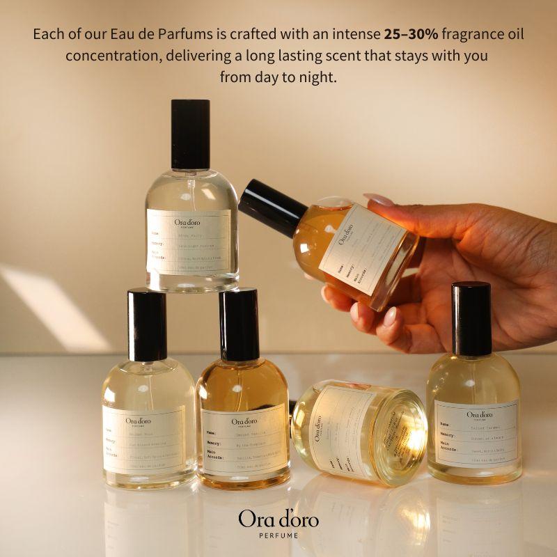 It’s filled with dark and mysterious notes of exotic and aromatic myrrh, creamy tones of vanilla and almond from the tonka bean and a hint of dried lavender. It’s rich, sensual and exotic, with sweetness balancing out the darker notes. It's youthful yet elegant.
